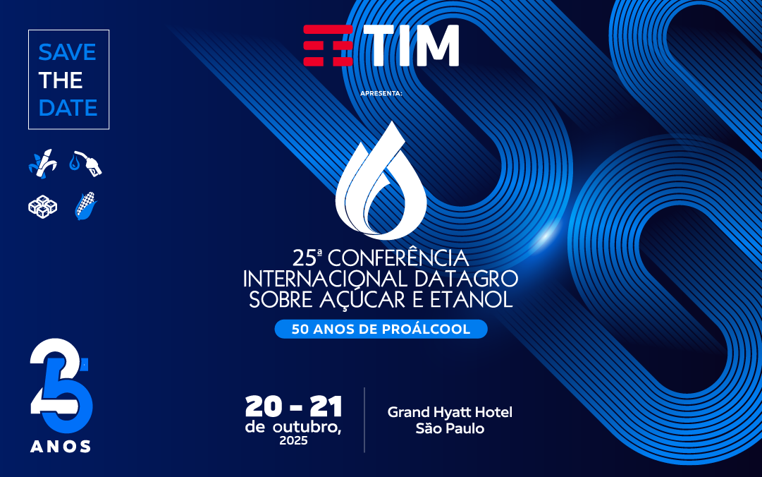 A 25ª Conferência Internacional DATAGRO sobre Açúcar e Etanol marca uma edição especial: celebramos 25 anos de evento e os 50 anos do ProÁlcool. Reunimos diferentes perspectivas para olhar o presente e o futuro da cadeia, com espaço para conversa direta, troca de experiências e atualização técnica.